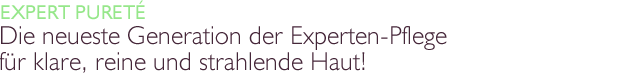 Glänzende Haut, Unreinheiten oder erweiterte Poren? Die legendären Produkte der Serie Expert Pureté richten sich sowohl an Heranwachsende in der Pubertät als auch an Frauen und Männer, die infolge von hormonellen Umstellungen, Stress oder Umwelteinflüssen an problematischer Haut leiden. Expert Pureté sorgen für einen frischen, klaren und mattierten Teint.